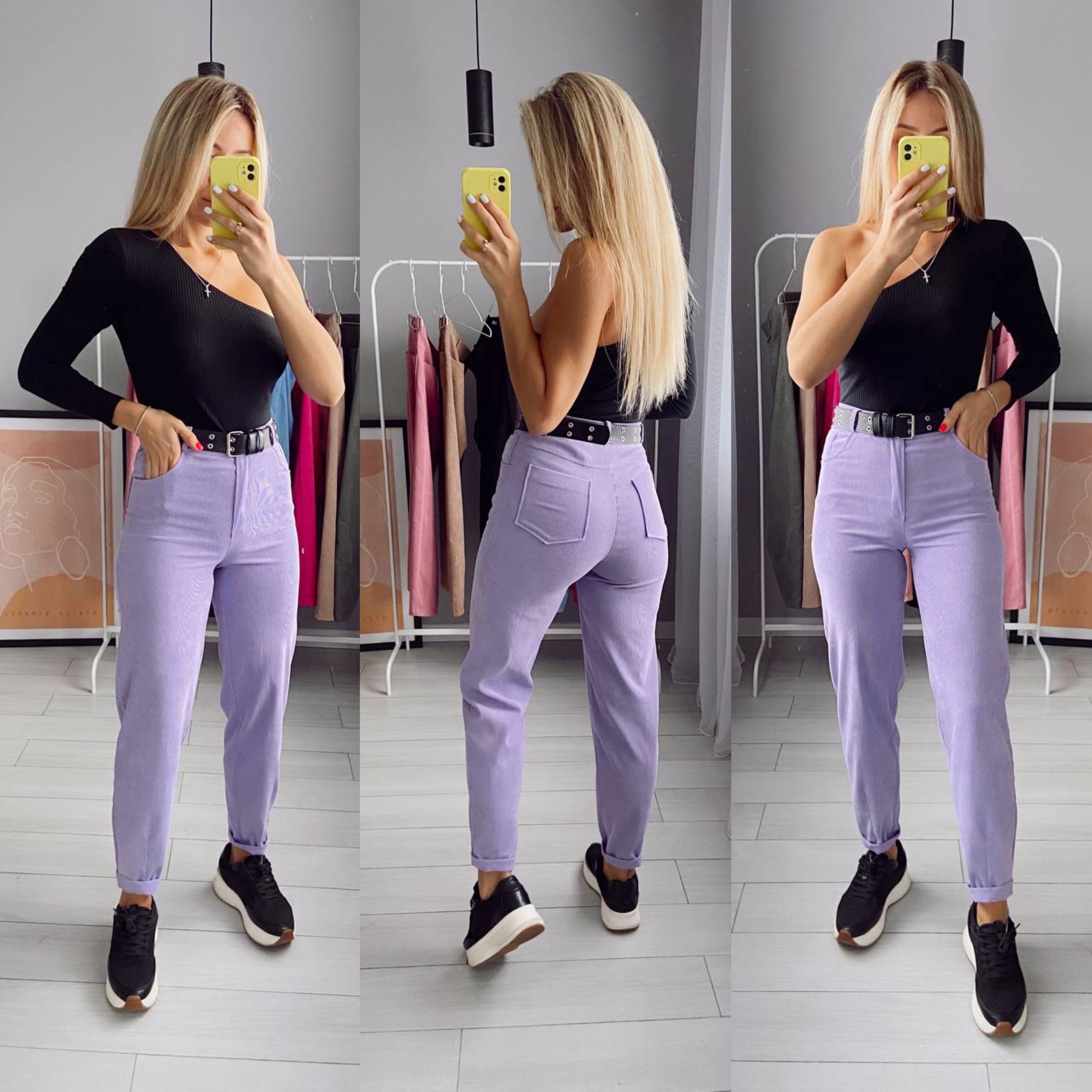 Женские вельветовые брюки зауженные к низу цвет лаванда 7240, Цвет: Лаванда, Размер: L-XL (46-48 UKR), фото