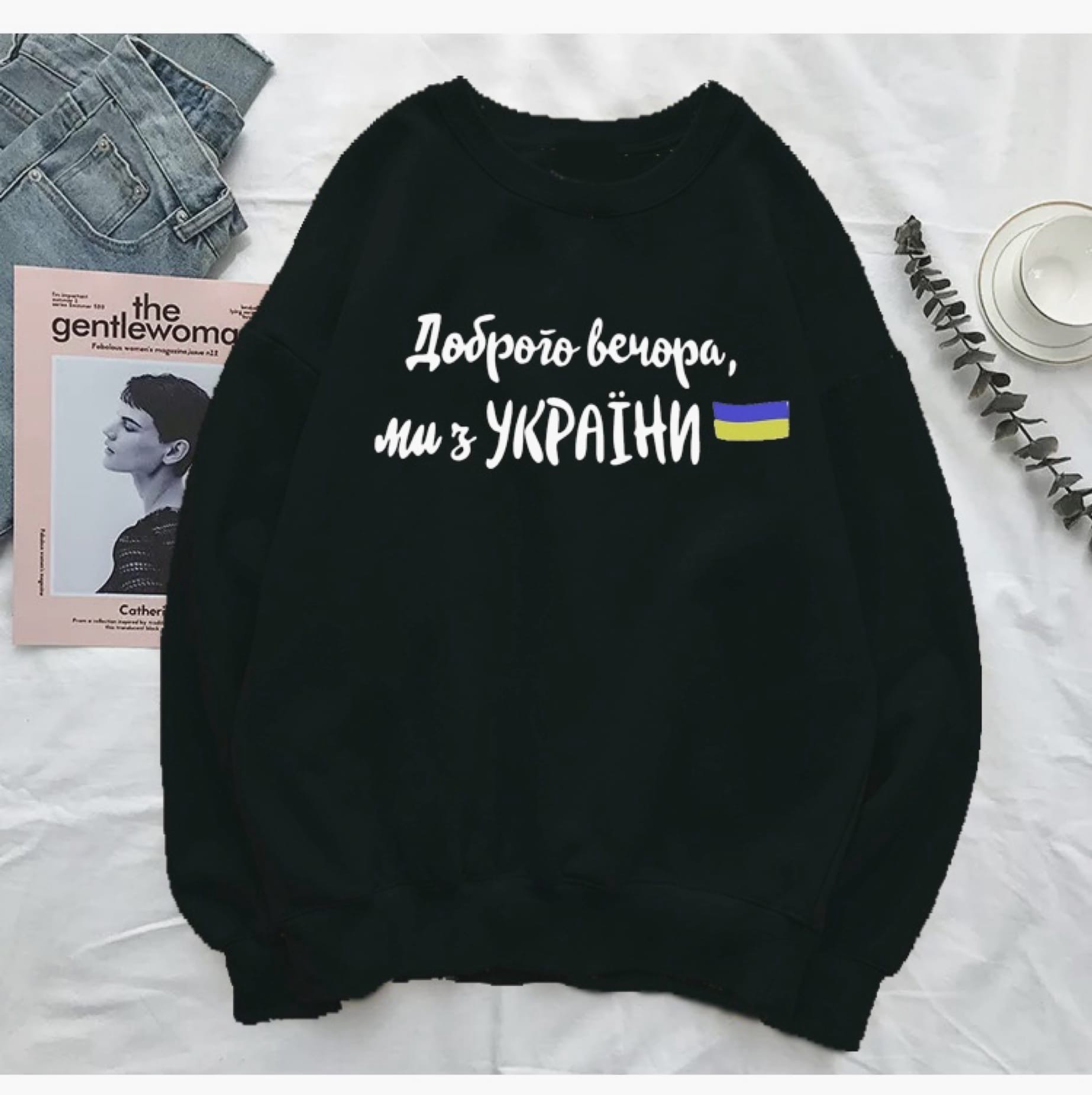 Женский свитшот черный свободного кроя “Доброго вечора , ми з України“ 323