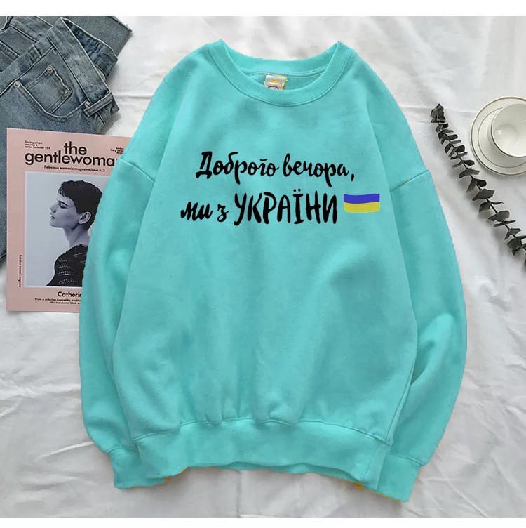 Женский свитшот бирюзовый свободного кроя “Доброго вечора , ми з України“ 323