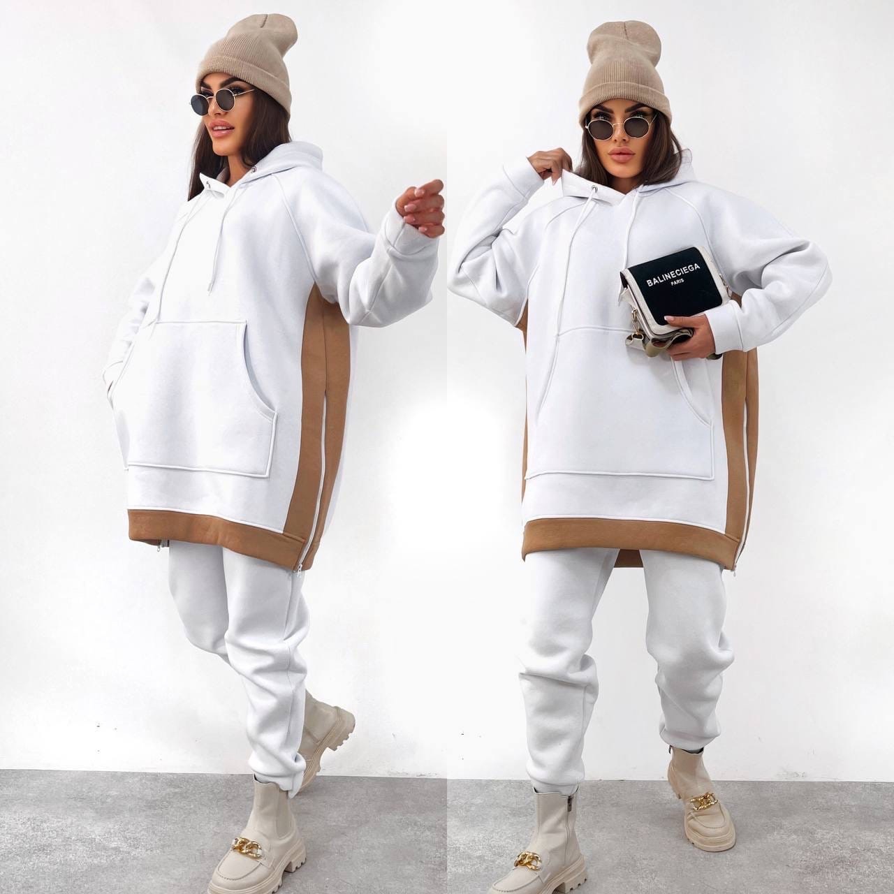 Женский модный спортивный костюм белый 415, Цвет: Белый, Размер: 54-56 UKR, фото