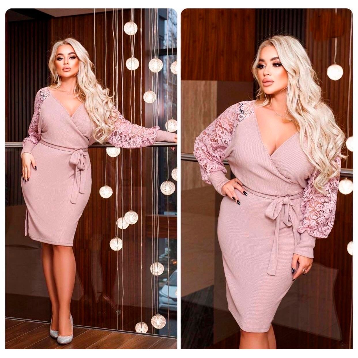 Платье для полных с декольте глубоким фрезовое 379