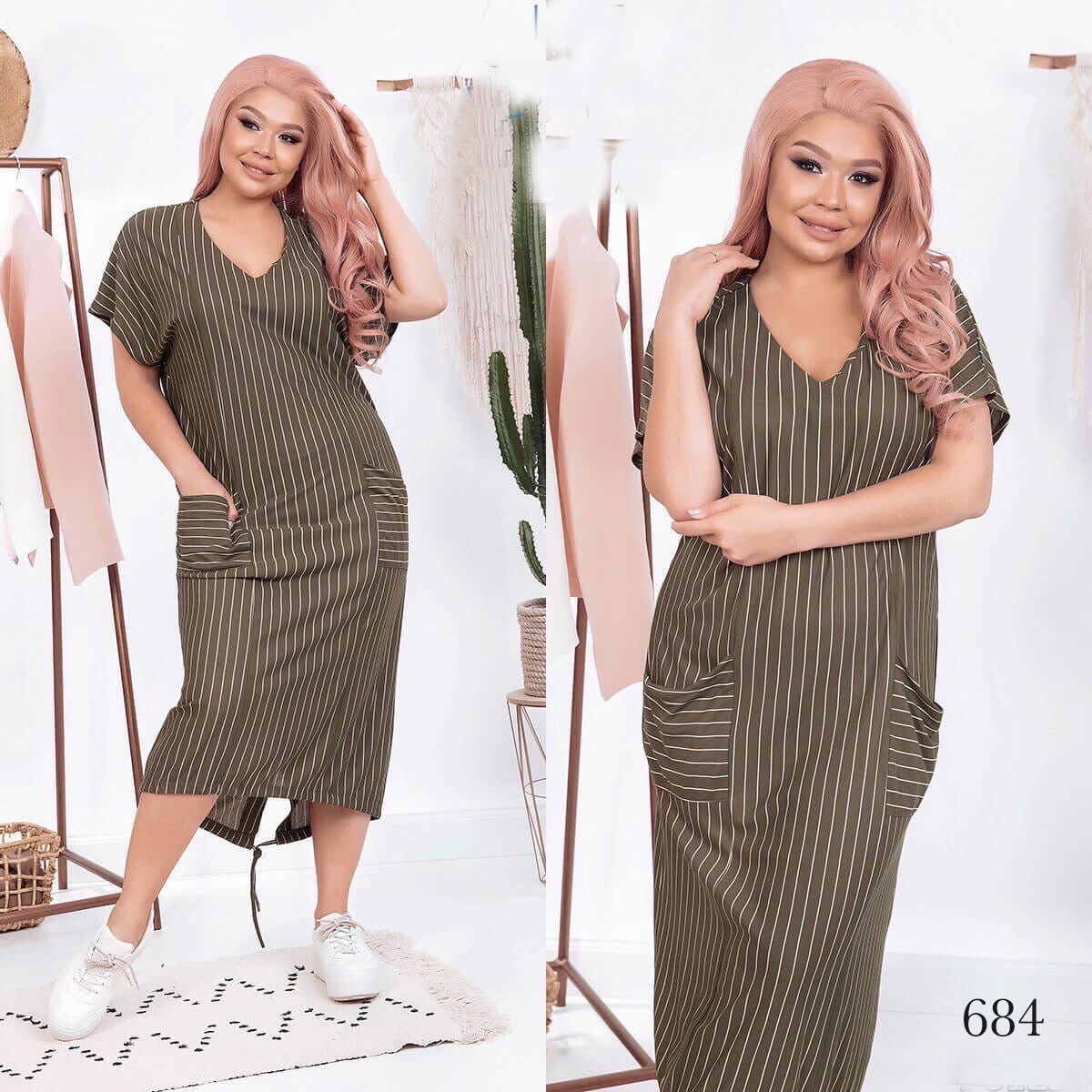 Платье свободного кроя в полоску цвет хаки 684, Цвет: Хаки, Размер: 54-56 UKR, фото
