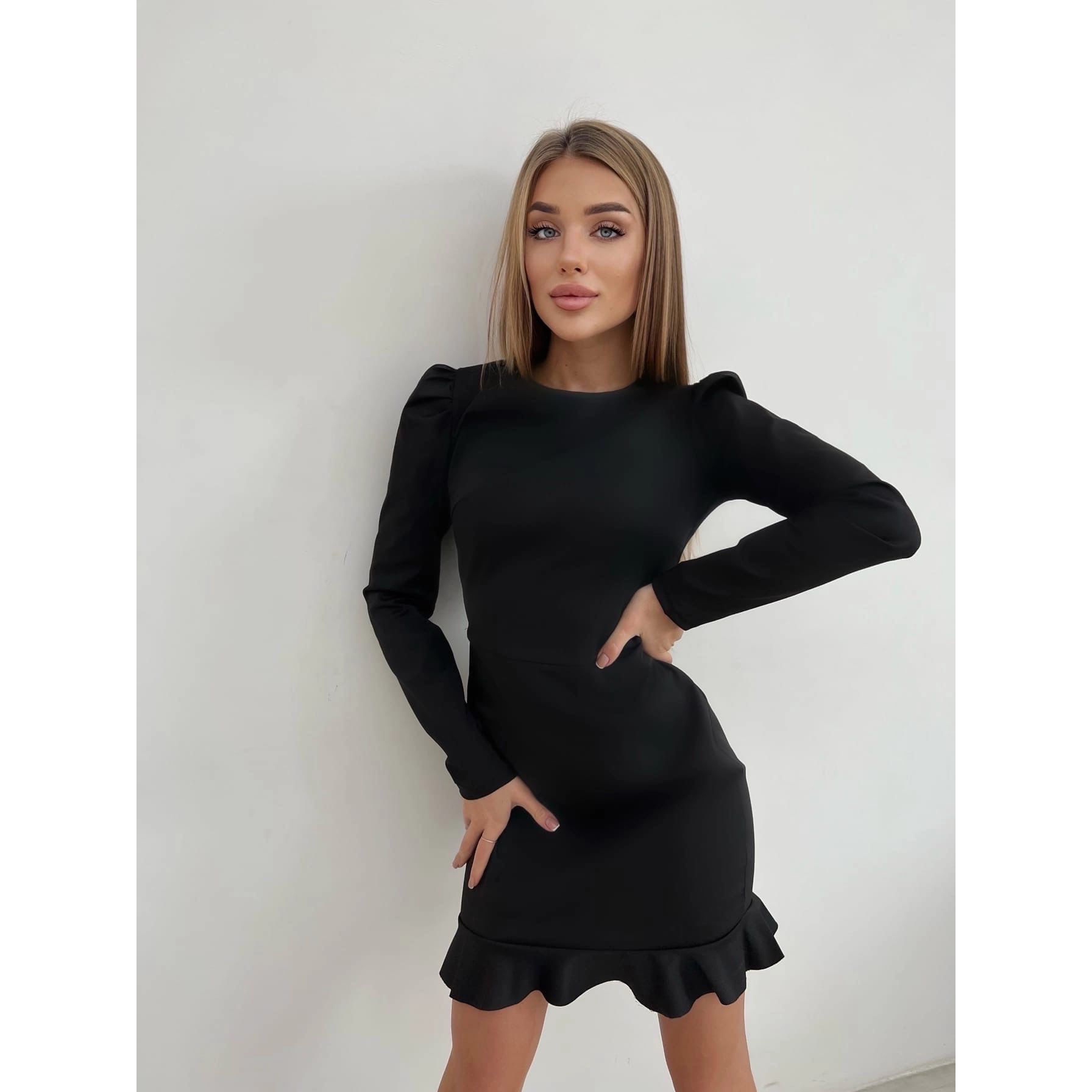 Чорне плаття міні з довгим рукавом 414