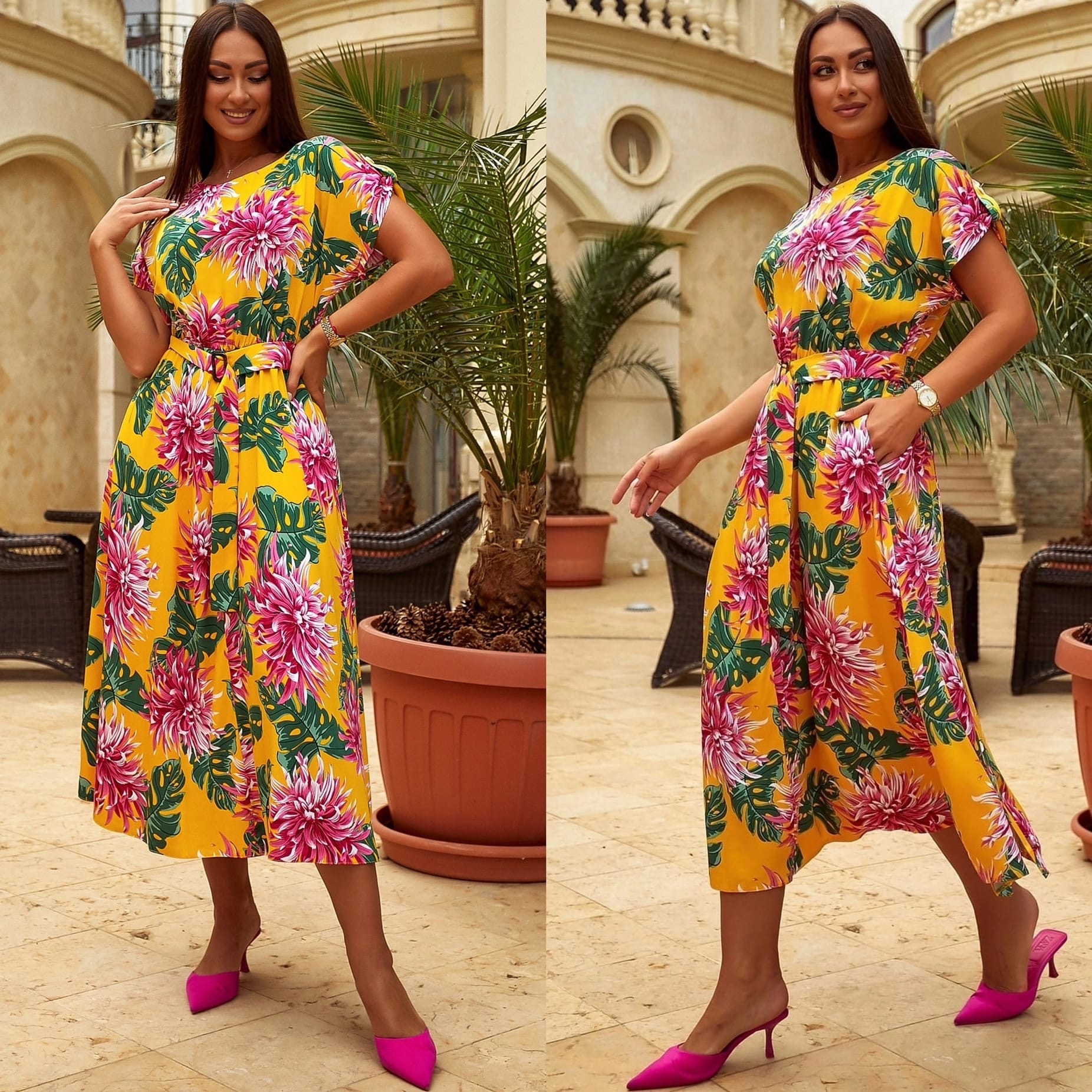 Плаття для повних жінок штапельне с63, Колір: Жовтий , Розмір: 54-56, фото