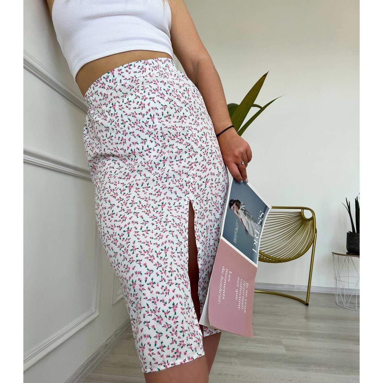 Стильна спідниця з розрізом по лінії стегна біла 149