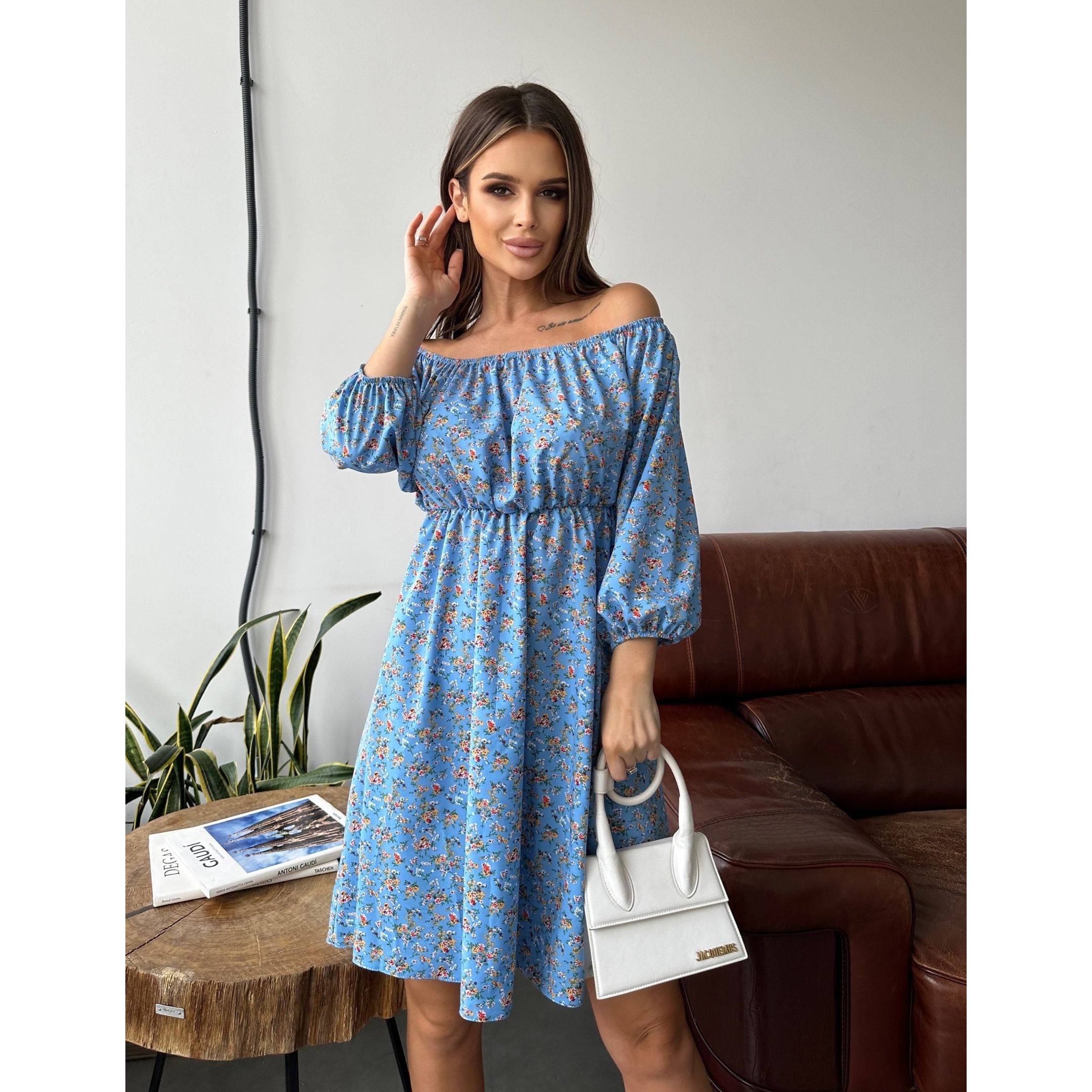 Сукня міні з коротким рукавом блакитне 493