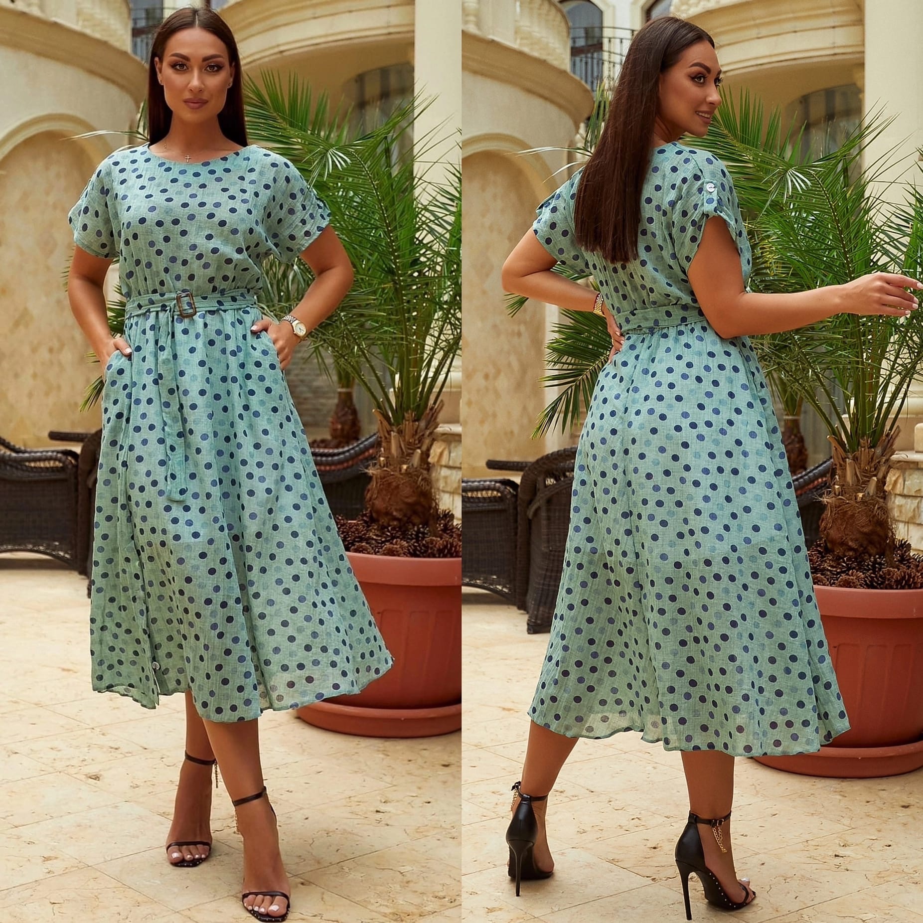 Сукня великого розміру в горошок колір ментол с62