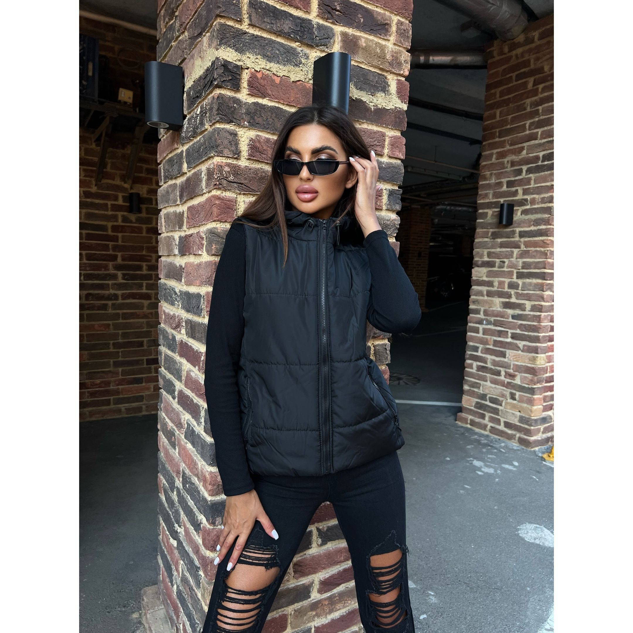 Женская жилетка теплая бежевая с капюшоном 635, Колір: Чорний, Розмір: S, фото
