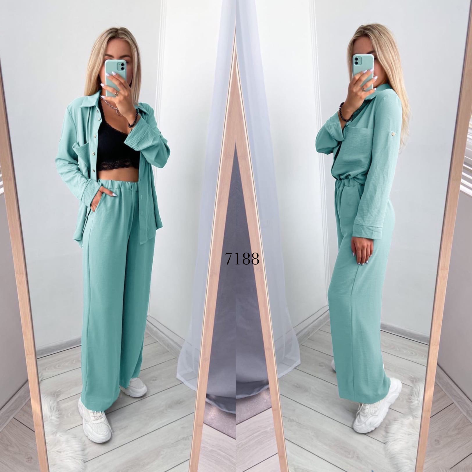 Женский костюм черный рубашка и брюки прямые 7188, Колір: М'ятний, Розмір: 42-46, фото