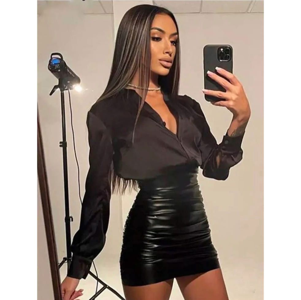 Мінімальна кількість для "Жіноча чорна спідниця міні з високою посадкою еко шкіра 424" є 1.