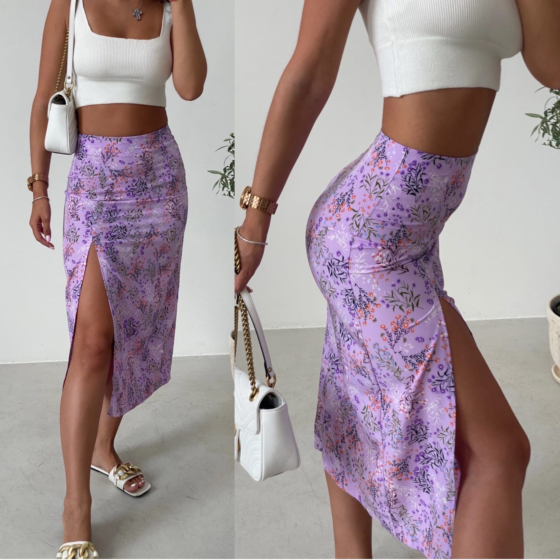 Мінімальна кількість для "Жіноча спідниця міді з розрізом по лінії стегна колір лаванда 392" є 1.