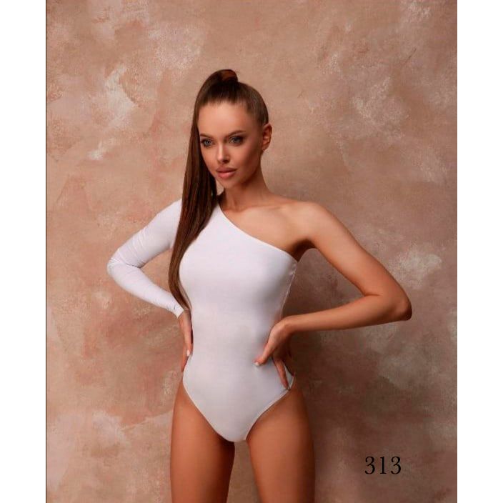 Жіночий білий боді на одне плече 313, Колір: Білий, Розмір: s-m, фото