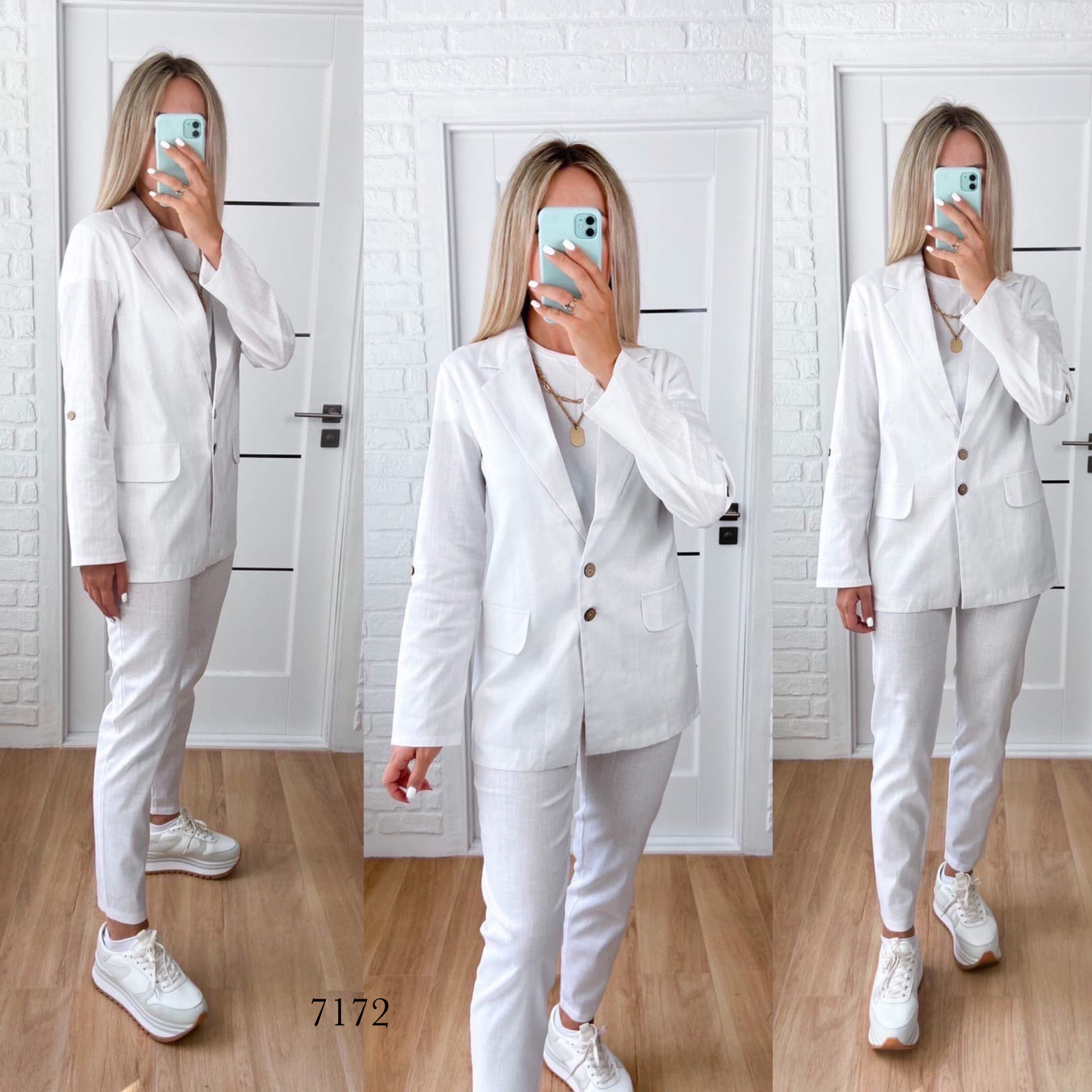 Мінімальна кількість для "Жіночий брючний костюм колір білий піджак і штани завужені 6797" є 1.