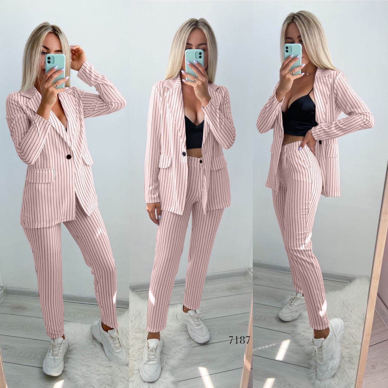 Мінімальна кількість для "Жіночий брючний костюм в смужку тонку колір пудра 7187" є 1.