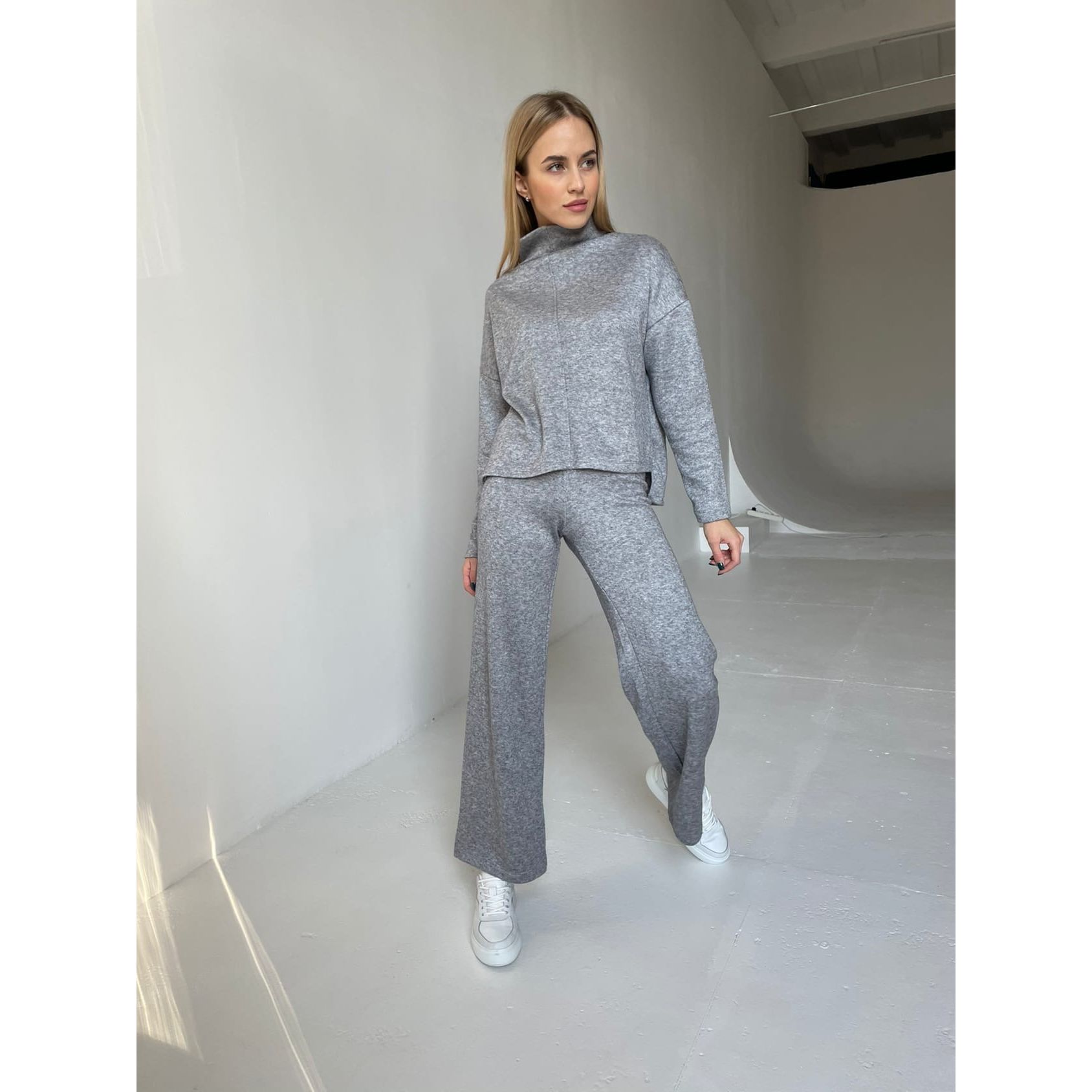 Шикарний костюм преміум якості з широкими штанами кюлотами та кофтою з горлом вільного крою, спереду коротше ззаду довше, кофточка прикрашена щільним декоративним швом. Вільний крій