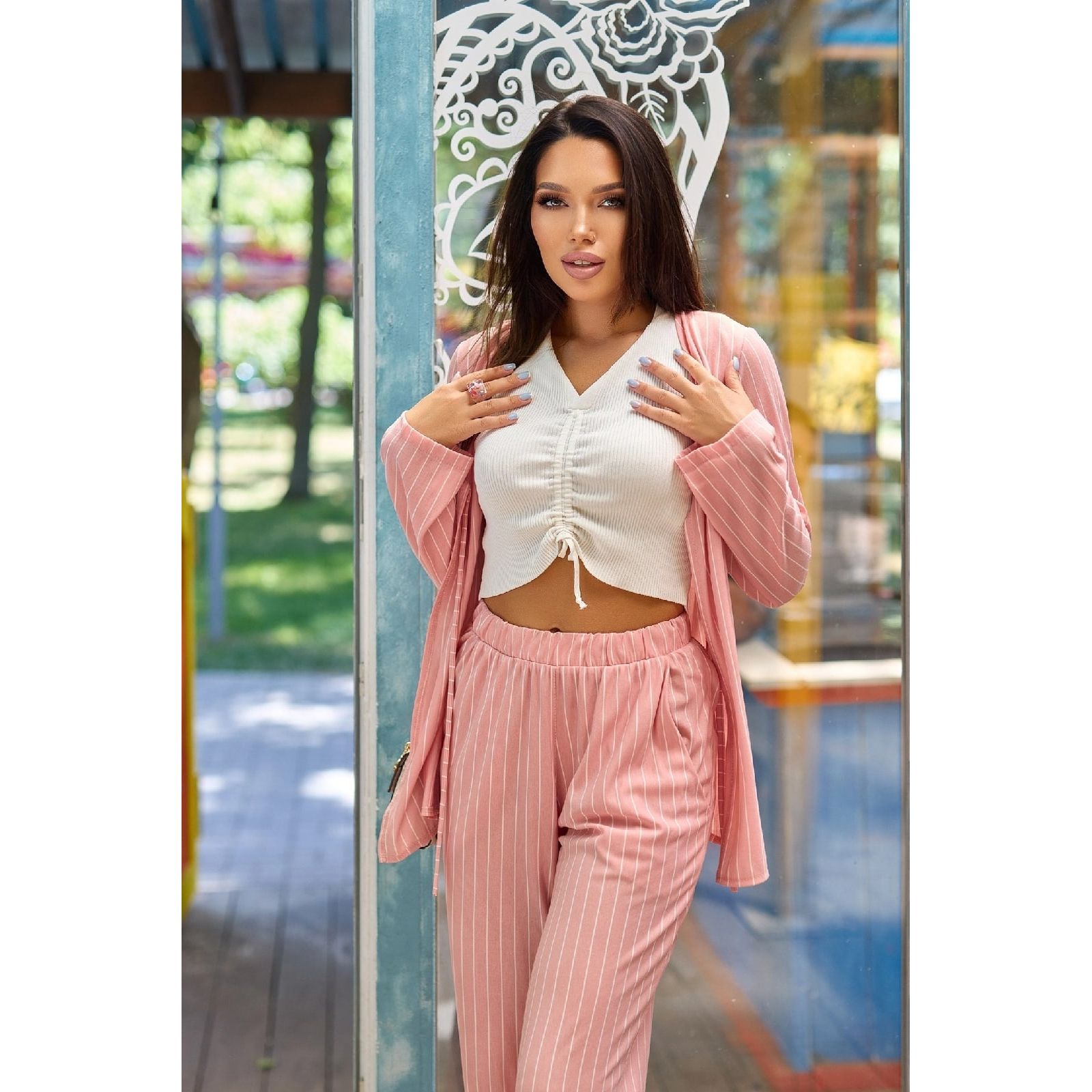 Жіночий костюм модний в смужку рожевий Лага р15430
