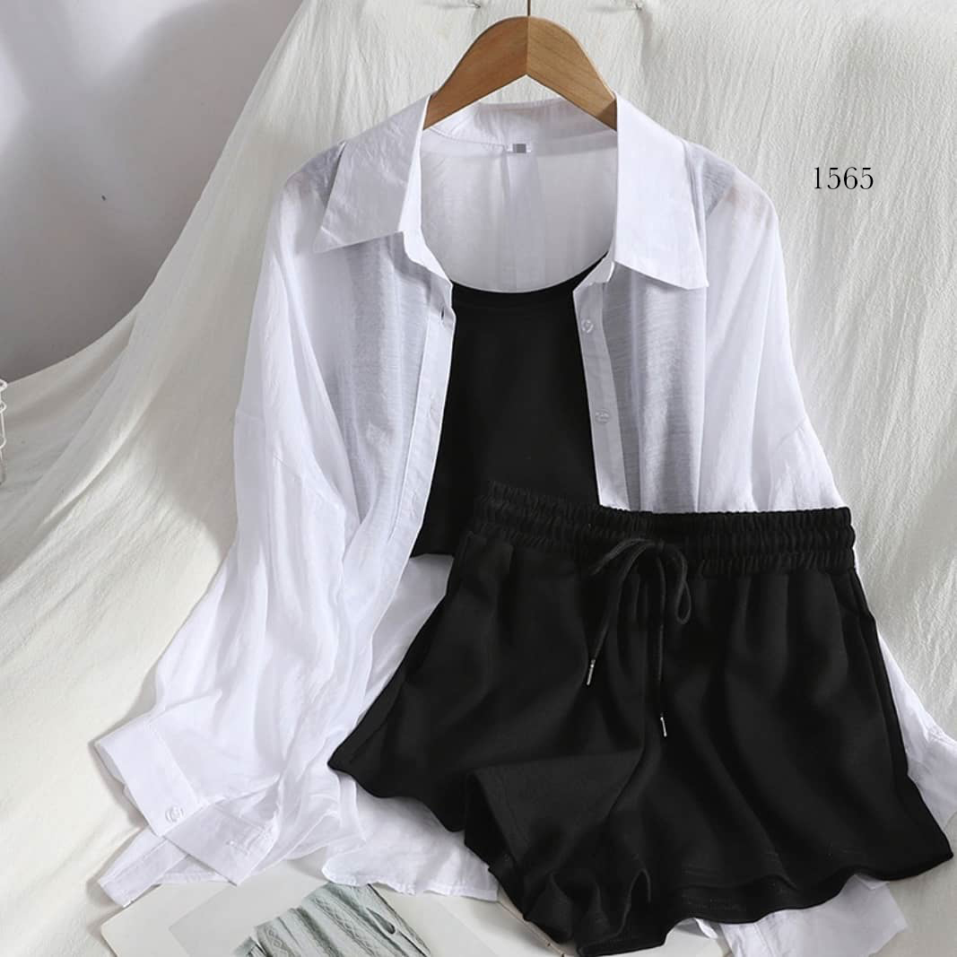 - Мод.1565 Костюм Трійка (Шорти + Топ + Сорочка)