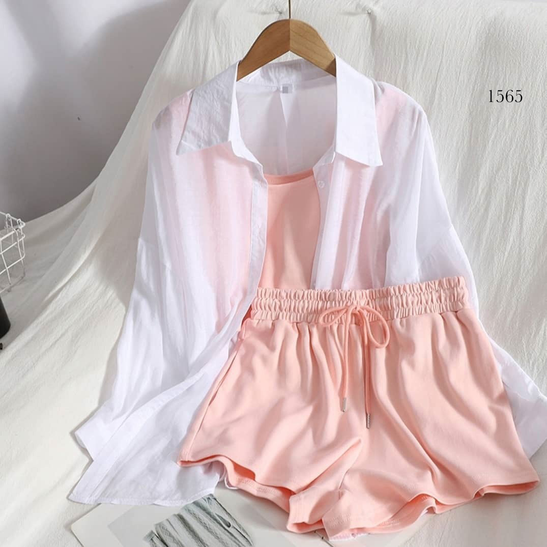 - Мод.1565 Костюм Трійка (Шорти + Топ + Сорочка)
