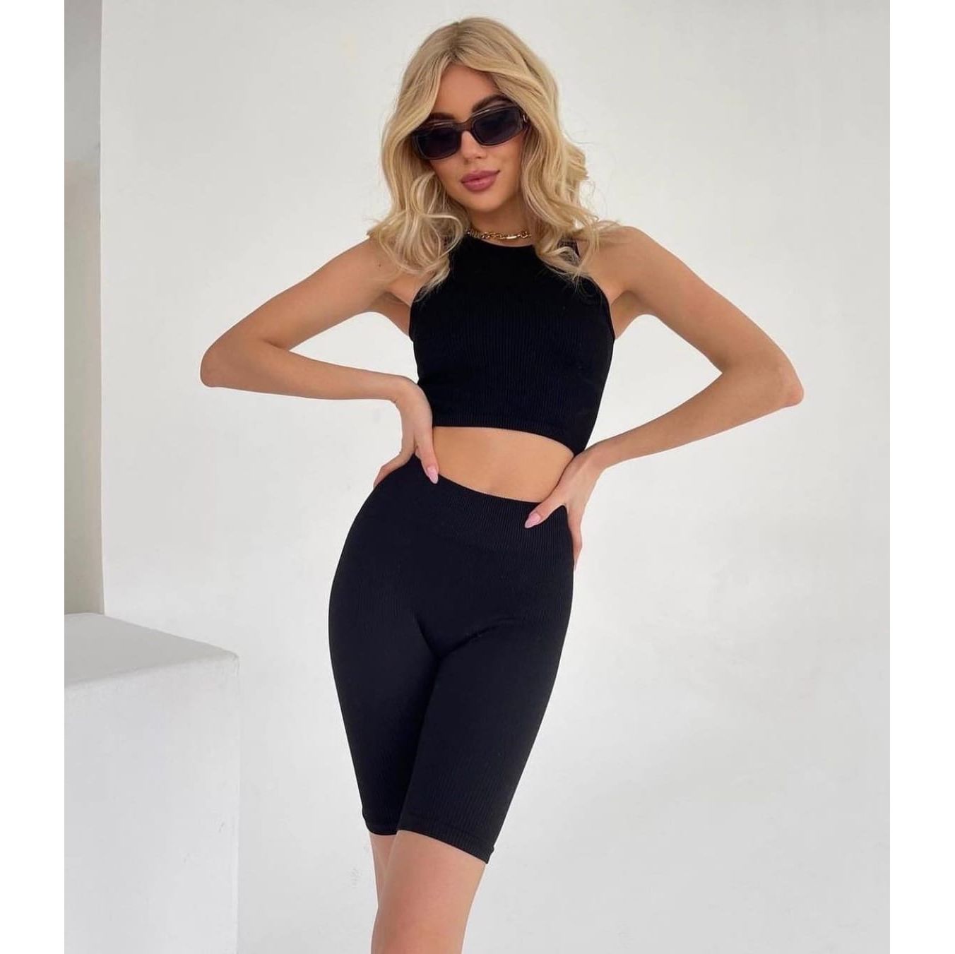 Жіночий літній костюм майка та шорти колір чорний 212, Колір: Чорний, Розмір: s-m, фото
