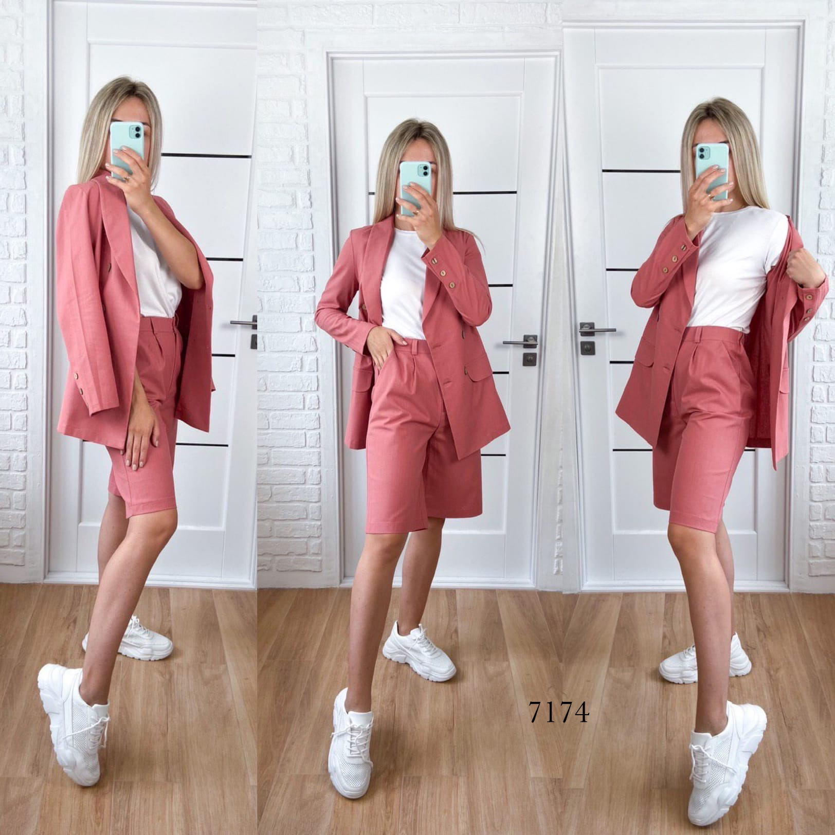 Мінімальна кількість для "Жіночий літній костюм піджак і шорти колір фрезовий 7174" є 1.