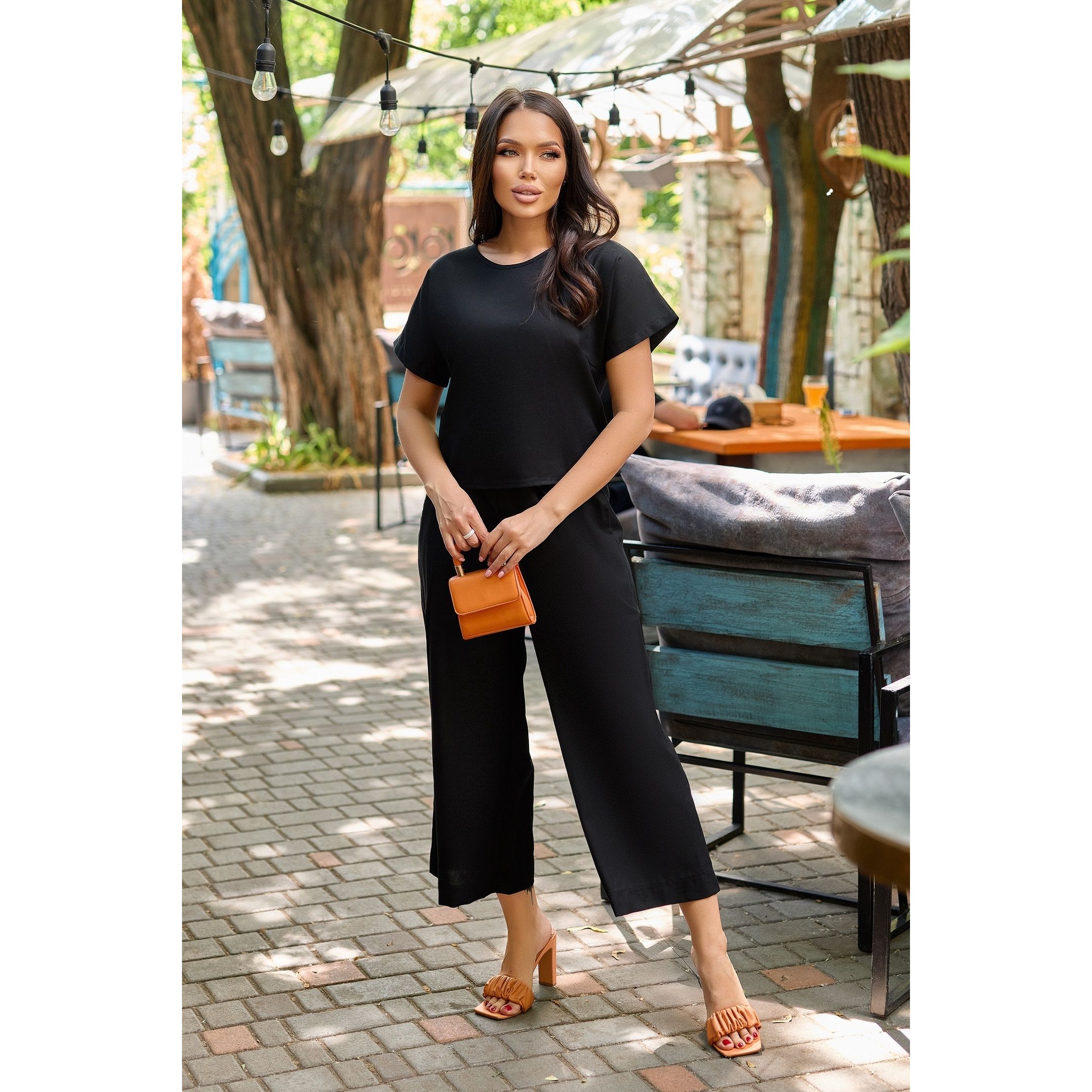 Жіночий літній костюм з блузкою колір чорний ат50/ат51