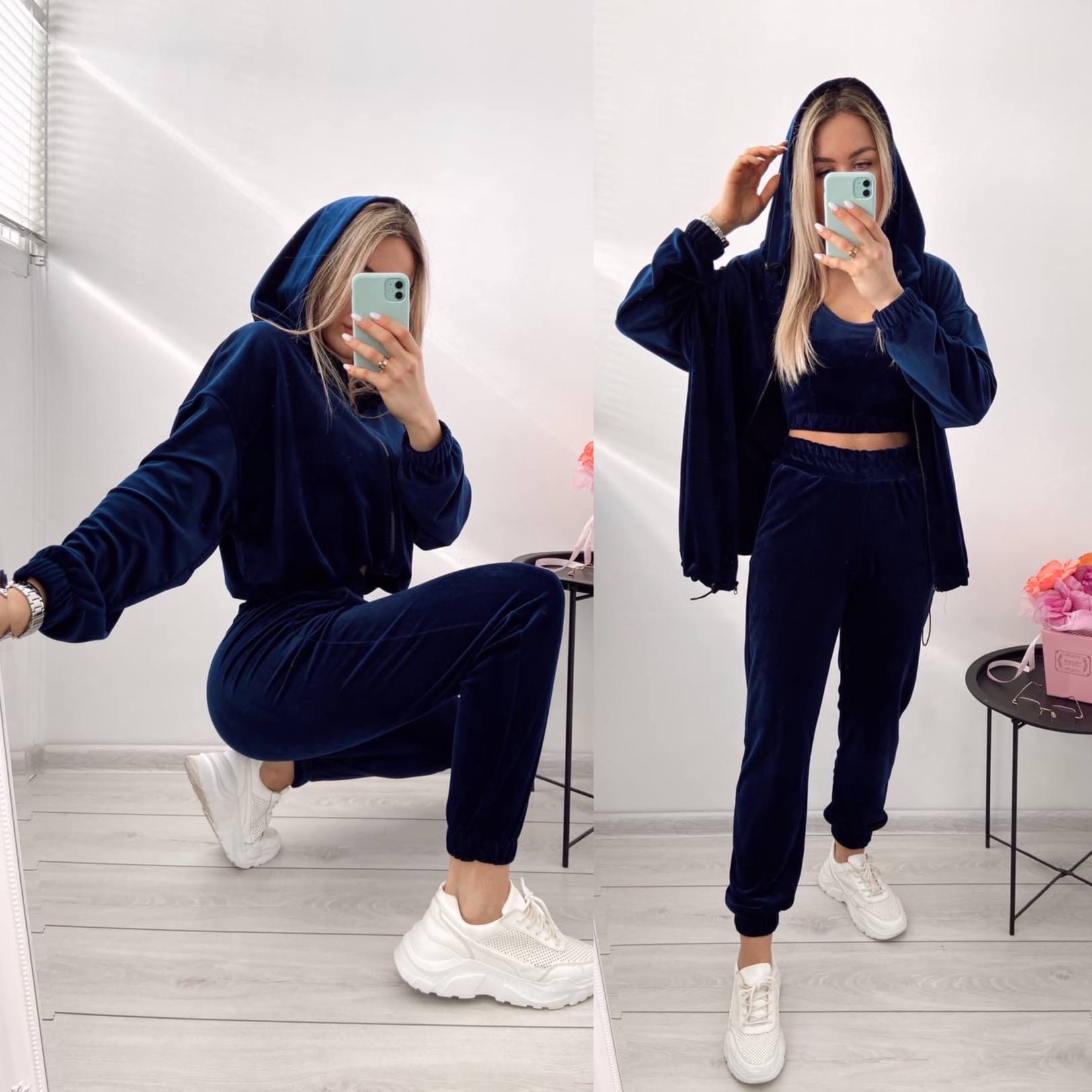 Мінімальна кількість для "Жіночий спортивний костюм синій велюровий трійка 7217" є 1.