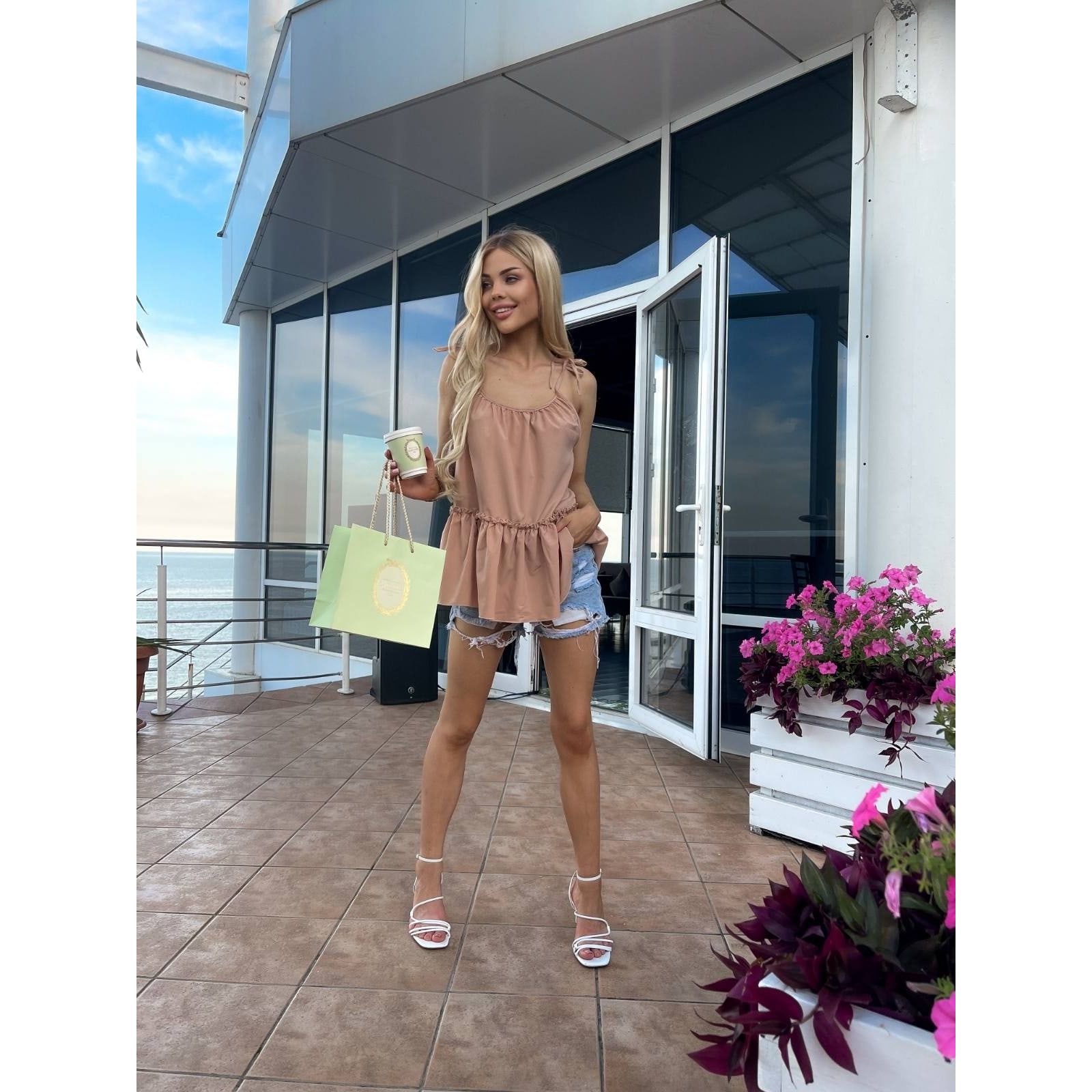 Женская блузка на лямках бежевая АК2029, Цвет: Бежевый, Размер: 42-46 UKR (One size), фото