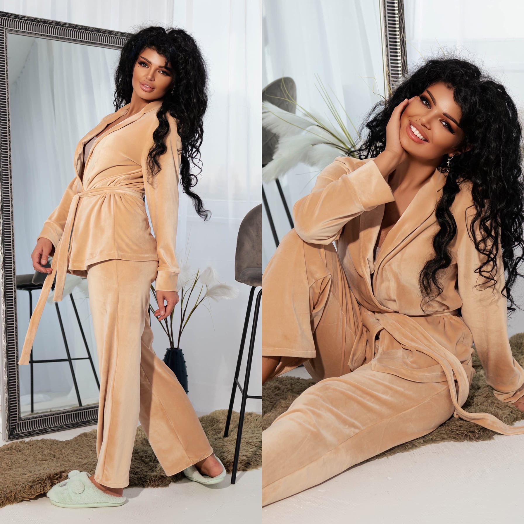 Минимальное количество для товара "Женская пижама штаны и короткий халат цвет бежевый 409" 1.