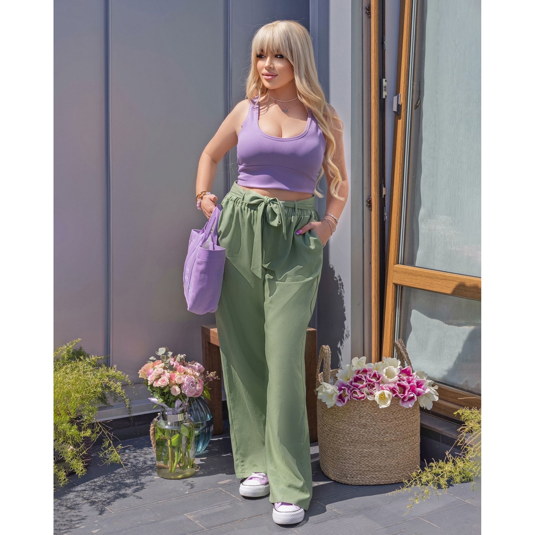 Женские брюки свободного кроя прямые цвет фисташка 432