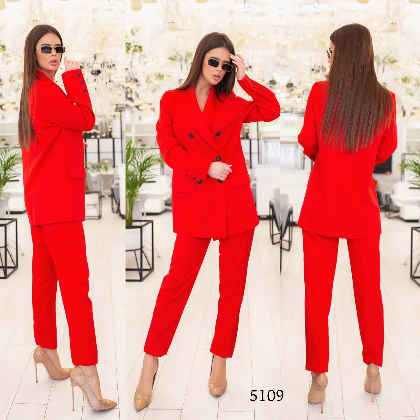 Женский классический костюм брючный красный 5109