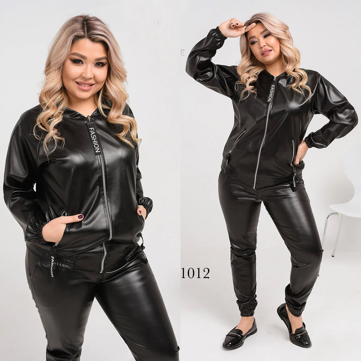 Женский костюм кожаный черный 1012, Цвет: Черный, Размер: L-XL (46-48 UKR), фото