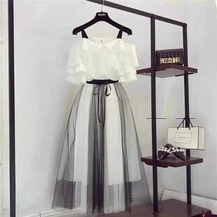 - Юбка: подклад из софта, сверху евросетка, пояс на резинке плюс шнурок. Блузка свободного кроя со спущенными плечами.