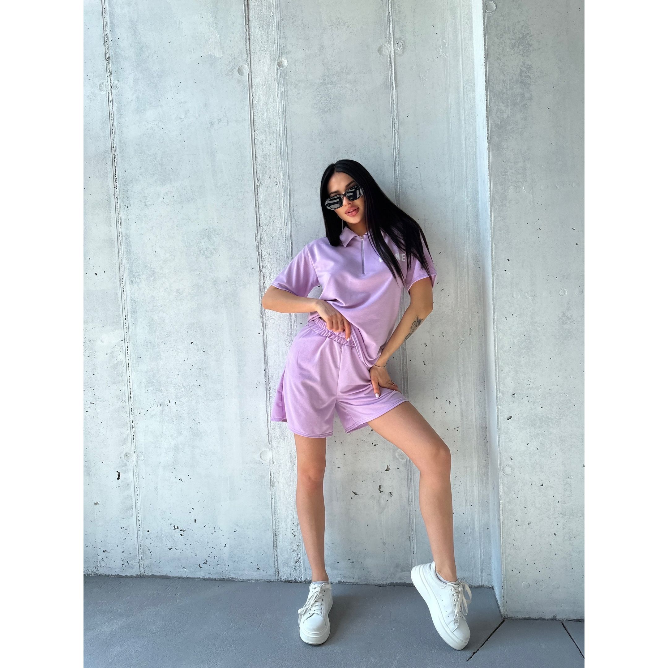 Женский костюм летний спортивный футболка поло и шорты цвет фиолетовый 496