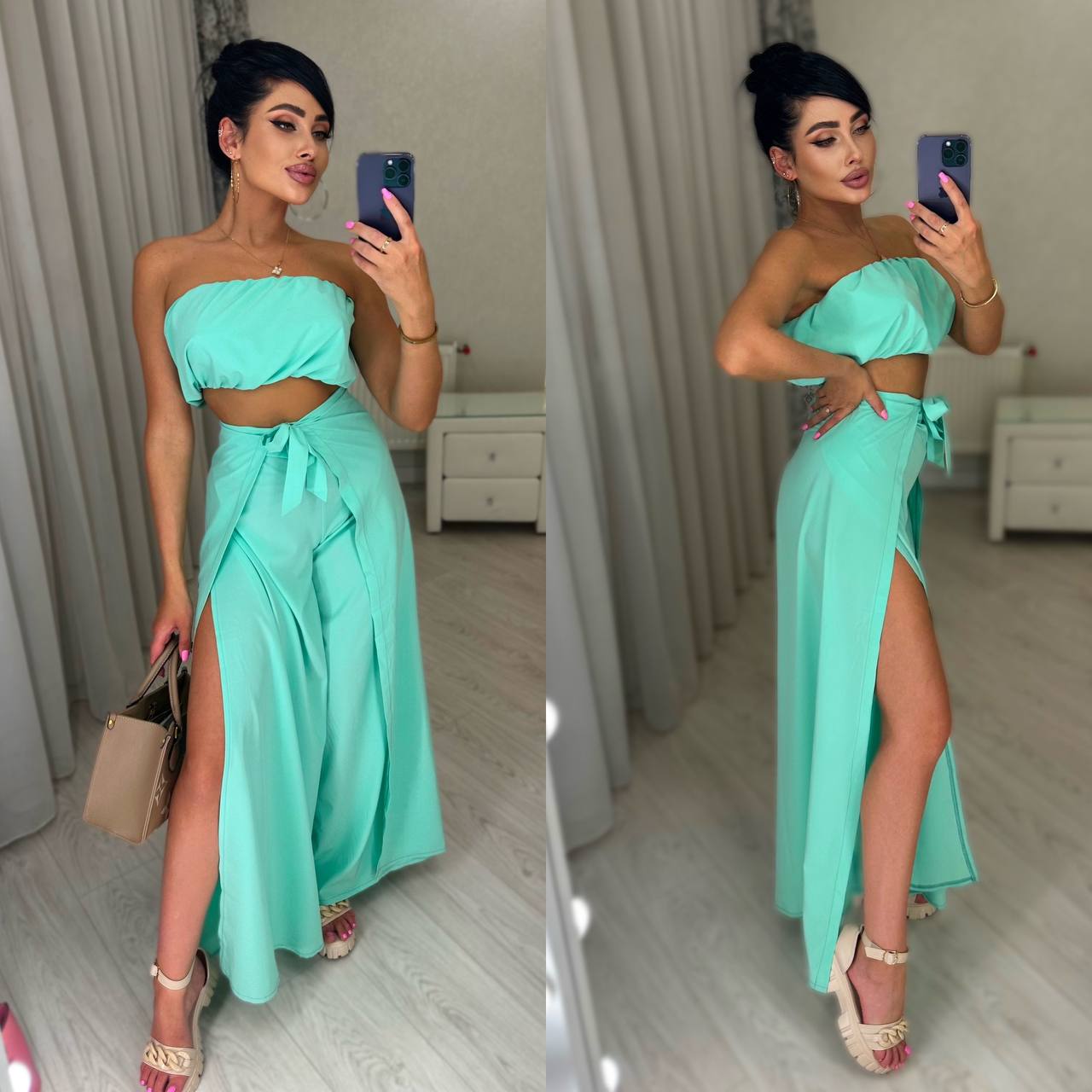 Женский костюм летний топик и брюки цвет мятный 1334