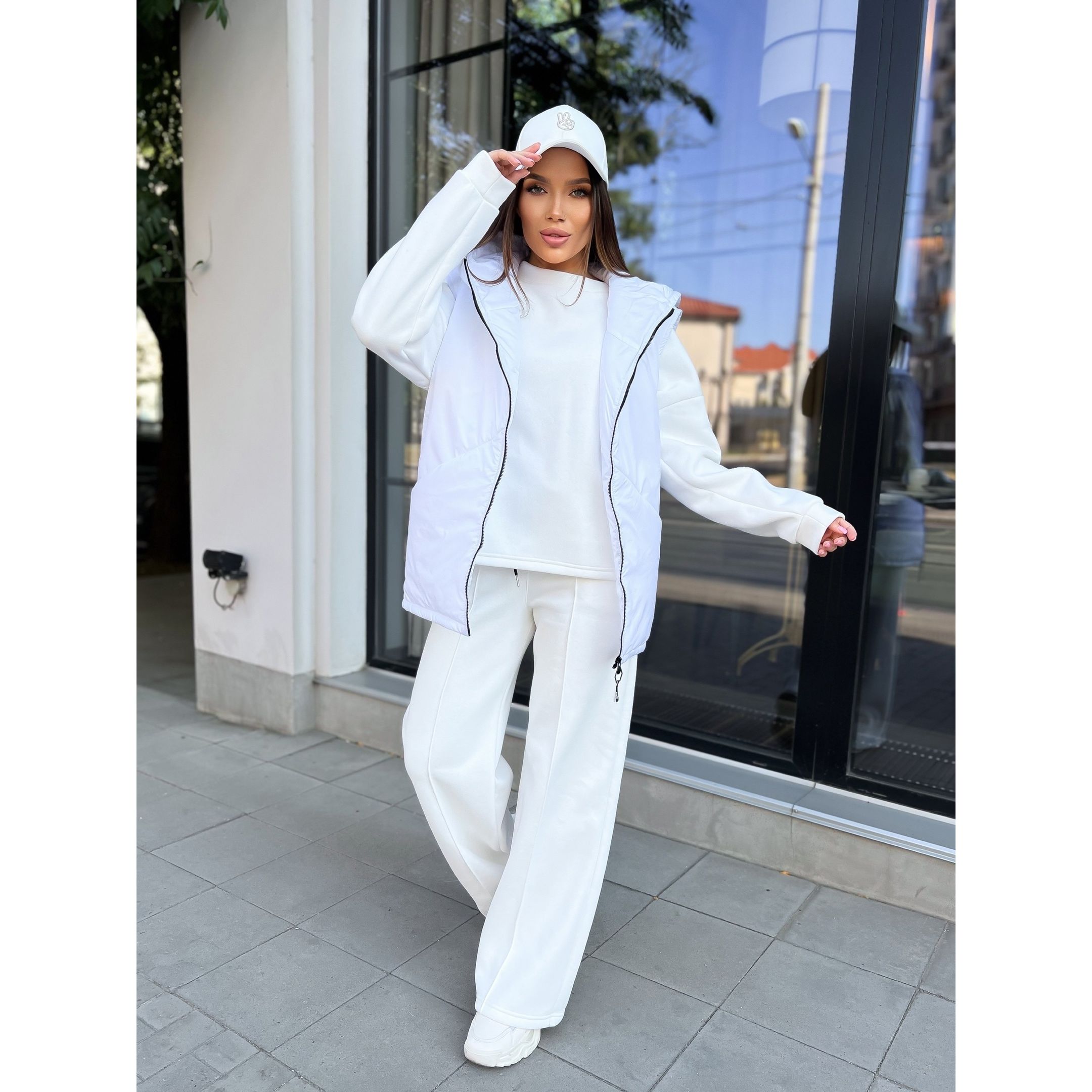 Женский прогулочный спортивный костюм тройка молочный 23028, Цвет: Молочный, Размер: L-XL (46-48 UKR), фото