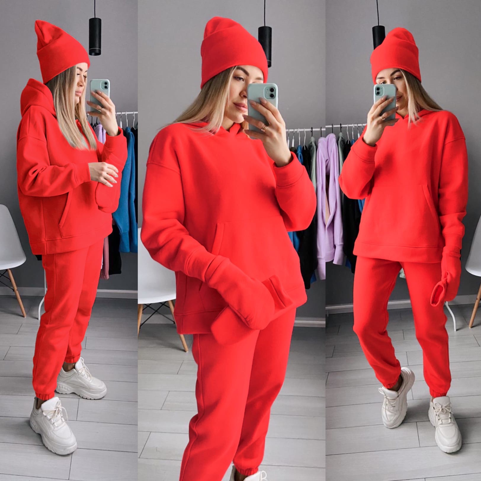 Минимальное количество для товара "Женский спортивный костюм четверка штаны кофта шапка и варежки цвет красный 7214" 1.