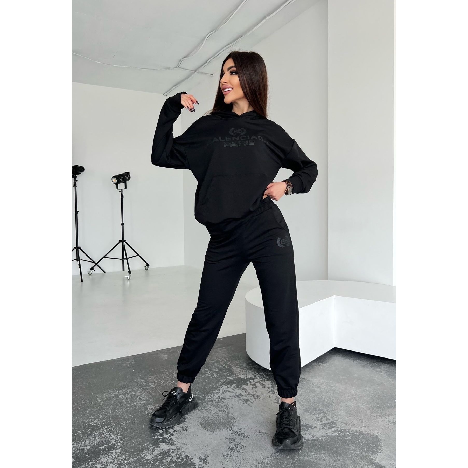 Женский спортивный костюм с капюшоном черный 476, Цвет: Черный, Размер: 50-52 UKR, фото