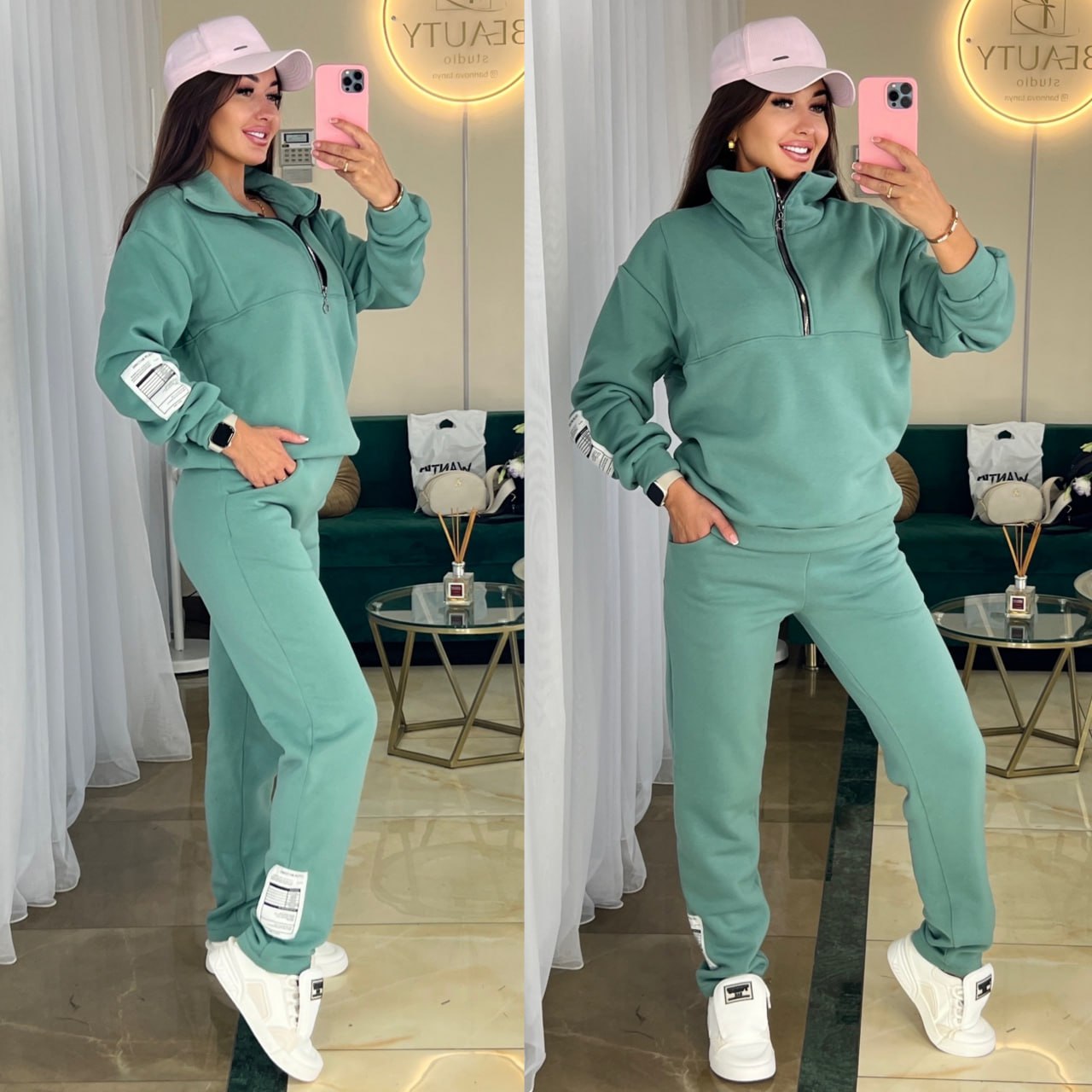 Кофта свободного кроя без капюшона, застегивается на молнию до середины кофты. Брюки на резинке, 2-и карманы.