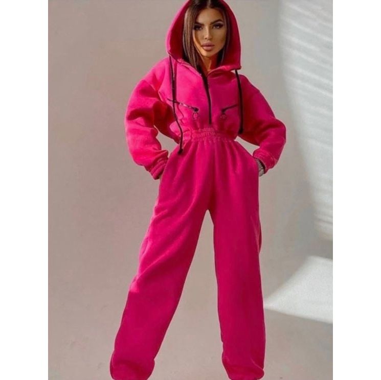 Женский теплый комбинезон закрытый теплый малиновый 3001, Цвет: Малиновый, Размер: L-XL (46-48 UKR), фото