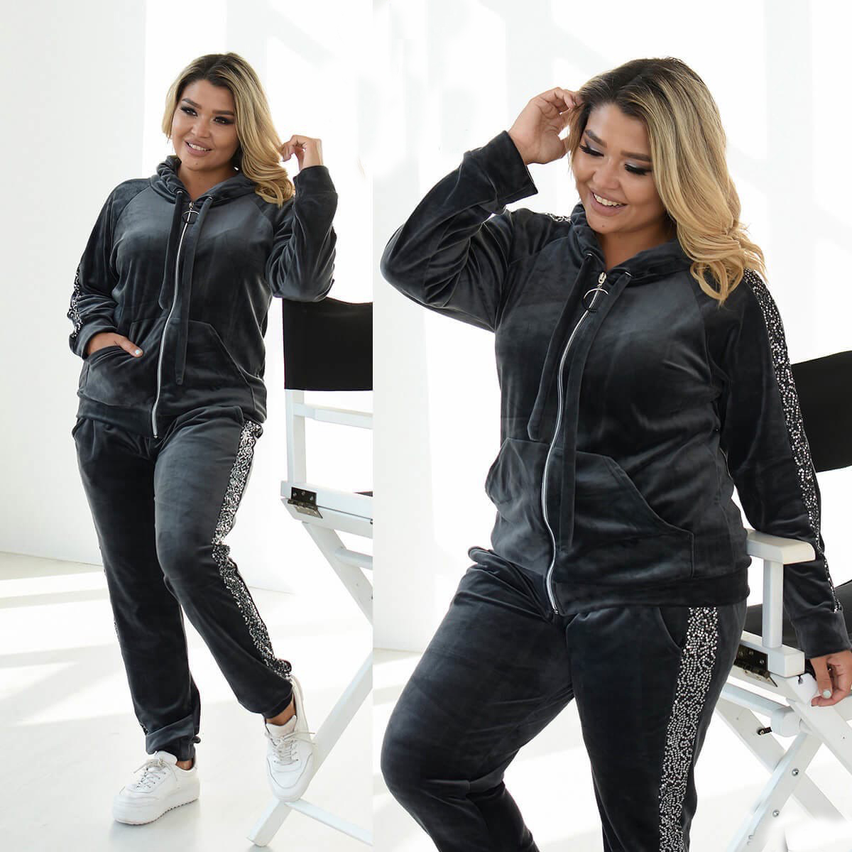 Женский велюровый спортивный костюм большого размера темно-серый 1036, Цвет: Темно-серый , Размер: 52-54 UKR, фото