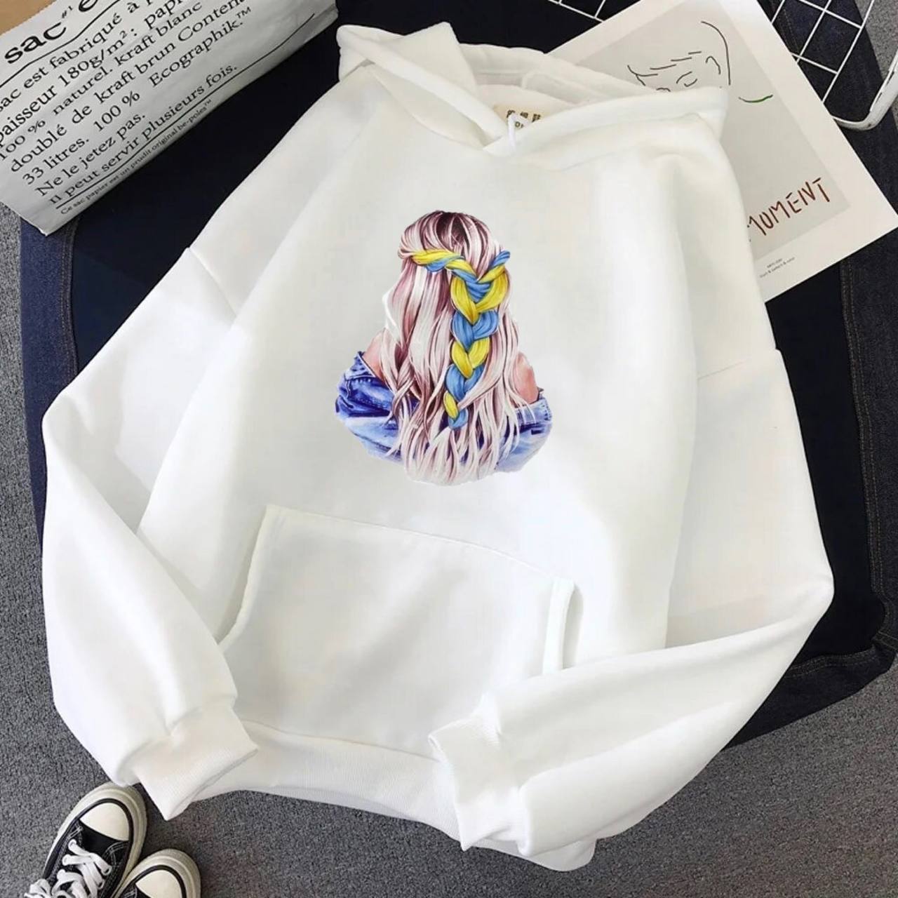 • Универсальное худи с карманом впереди, низ и рукава на манжетах, капюшон без шнурка