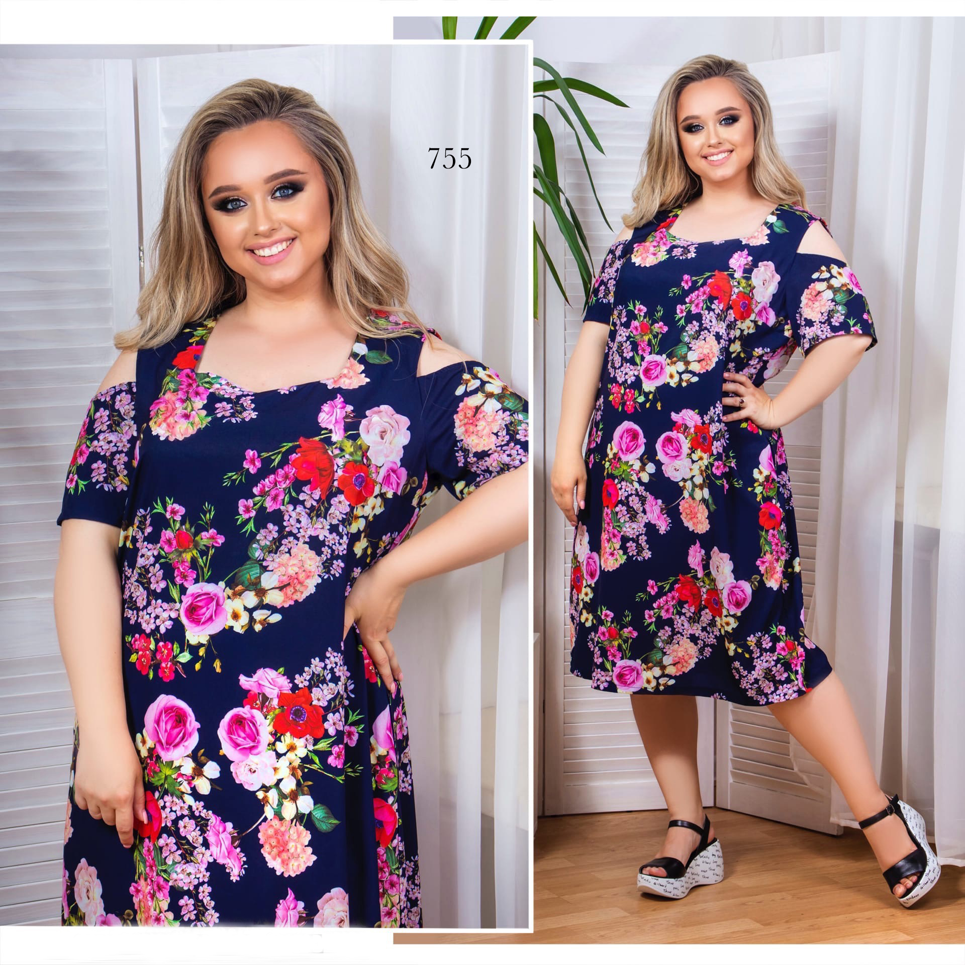 - Цвет: Синий-Принт цветы
